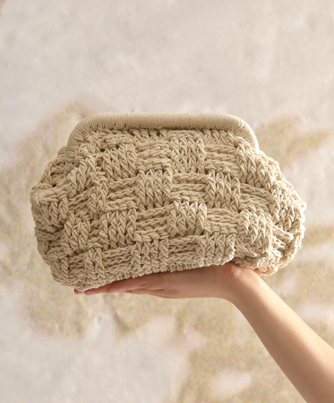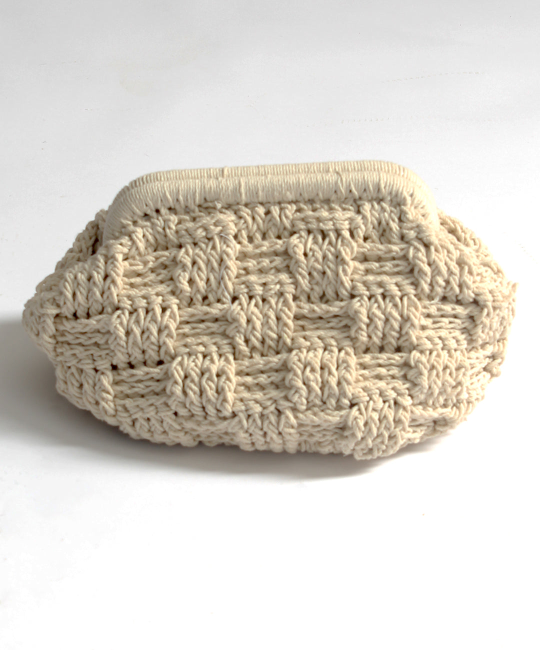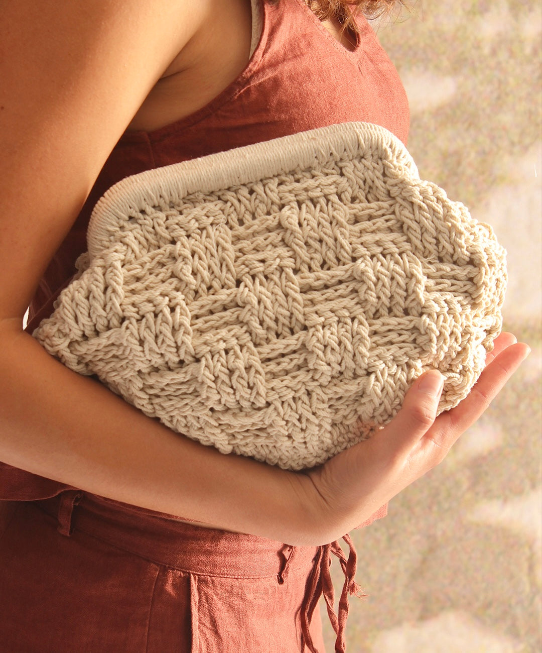 Handcrafted with a standout basketweave texture, the Grid Clutch is your go-to for minimal effort, maximum impact. Made from soft cotton cord in a structured silhouette, it features a magnetic clasp for secure, fuss-free closure. Compact yet roomy enough for the essentials—perfect for day strolls or balmy evenings out.