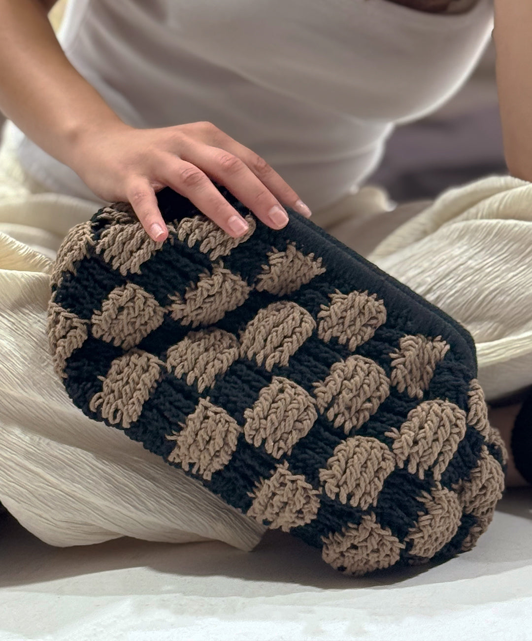 Handcrafted with a standout basketweave texture, the Grid Clutch is your go-to for minimal effort, maximum impact. Made from soft cotton cord in a structured silhouette, it features a magnetic clasp for secure, fuss-free closure. Compact yet roomy enough for the essentials—perfect for day strolls or balmy evenings out.