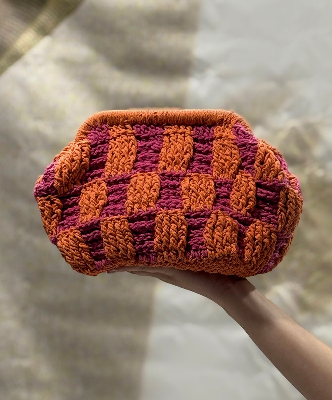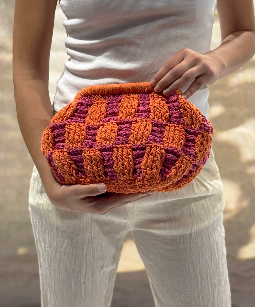 Handcrafted with a standout basketweave texture, the Grid Clutch is your go-to for minimal effort, maximum impact. Made from soft cotton cord in a structured silhouette, it features a magnetic clasp for secure, fuss-free closure. Compact yet roomy enough for the essentials—perfect for day strolls or balmy evenings out.